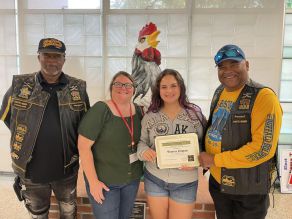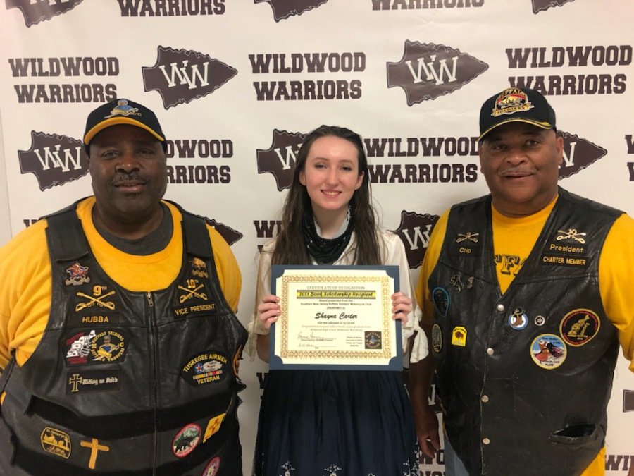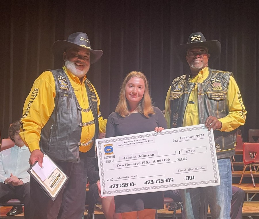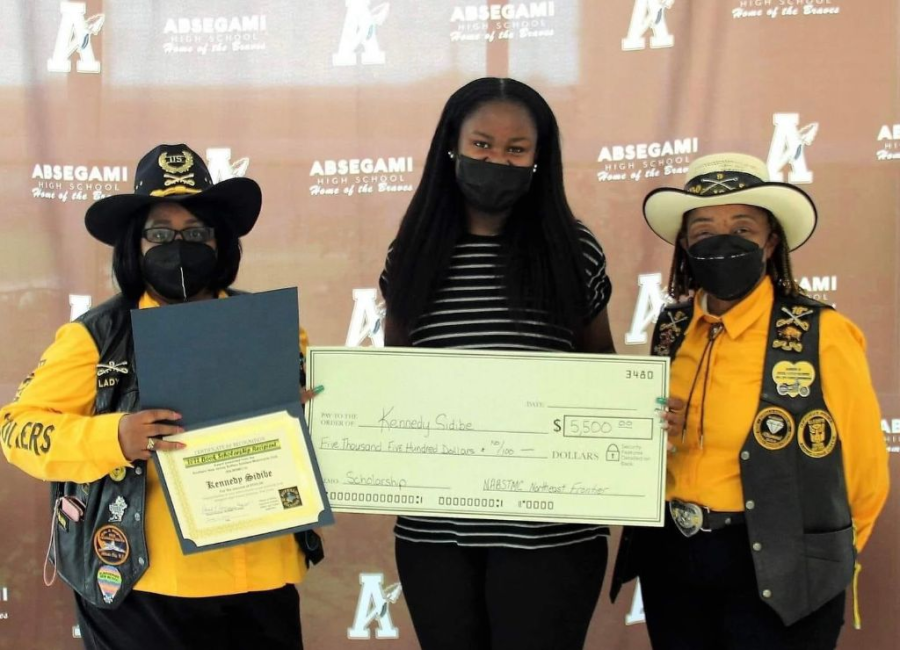 Kennedy Sidibe (center) from Absegami High School, was the 2022 recipient of the Southern New Jersey BSMC Book Scholarship. In addition, Kennedy was selected as the recipient for the Northeast Frontier BSMC scholarship. She is pictured with Theresa "Lady T" Mitchell (left, SNJBSMC 2022 Scholarship Chair) and Krista "KC" Clark (right, Northeast Frontier Secretary)